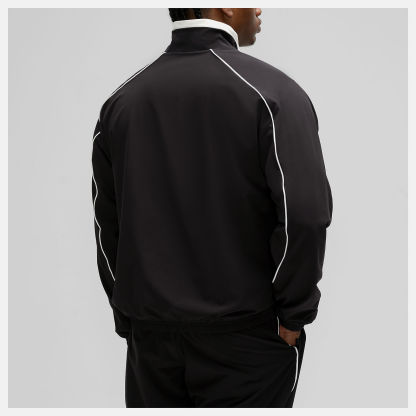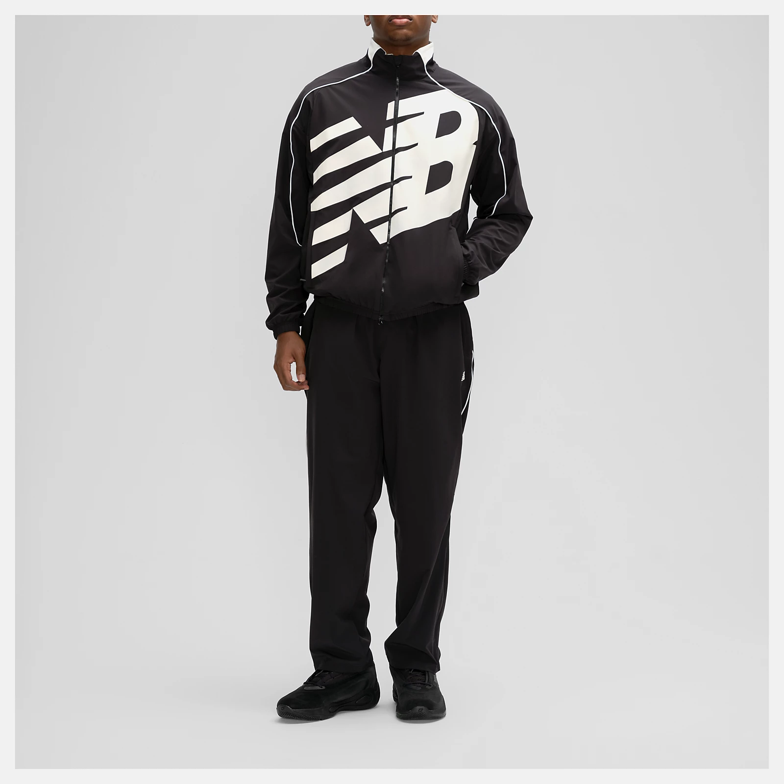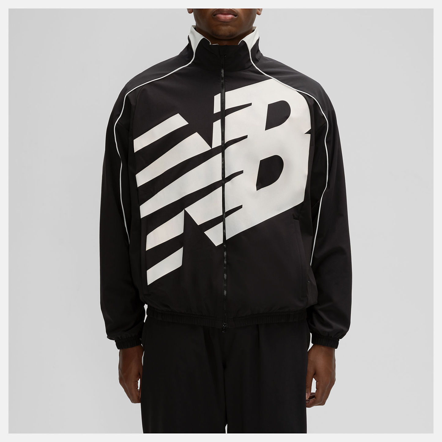 ゆったりとしたフィット感とオーバーサイズのロゴが特徴の、バスケットボール風のフルライニングジャケット。普段使いにぴったりの万能なレイヤードスタイルです。