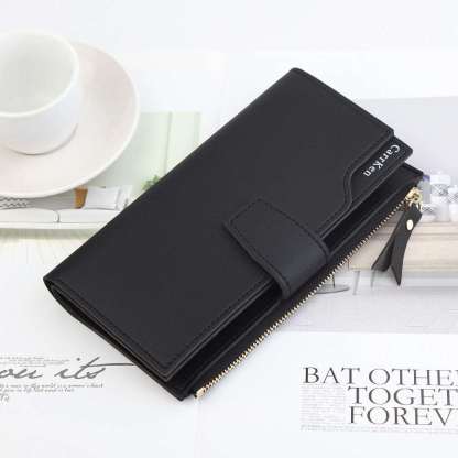 Introducing the Women's Long Zipper Wallet, the perfect accessory for the modern woman on the go. Made from high-quality synthetic leather, this wallet is both stylish and durable. The innovative zipper and buckle opening method ensures the safety of your belongings, while the internal structure boasts a concealed compartment, bill holder, photo slot, and change slot for ultimate organization. Available in a variety of vibrant colors including pink, blue, green, red, brown, and black, this wallet is sure to match any outfit. Measuring 19*9.5*3cm, it's the perfect size to fit all your essentials. Upgrade your wallet game with this must-have accessory.