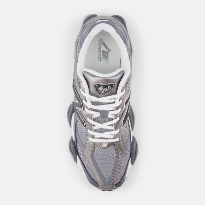 9060は、クラシックな99Xシリーズの洗練されたスタイルと革新性を重視したデザインを新たに表現したモデルです。9060は、Y2K時代の誇らしげな未来志向のテクノロジー美学にインスパイアされた、歪んだ感性で、お馴染みの99Xの要素を再解釈しています。990から受け継いだスタビライザーは、アッパー全体に拡張され、動きを視覚的に表現します。また、波状のラインとスケールアップした造形的なポッドミッドソールは、お馴染みのABZORBとSBSのクッショニングプラットフォームを強調しています。